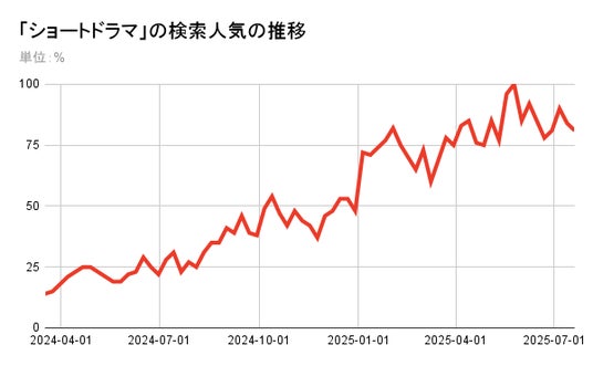 Googleトレンド上では、「ショートドラマ」は直近の約1年で7倍前後に拡大。市場の注目度が急激に高まっていることがうかがえます。