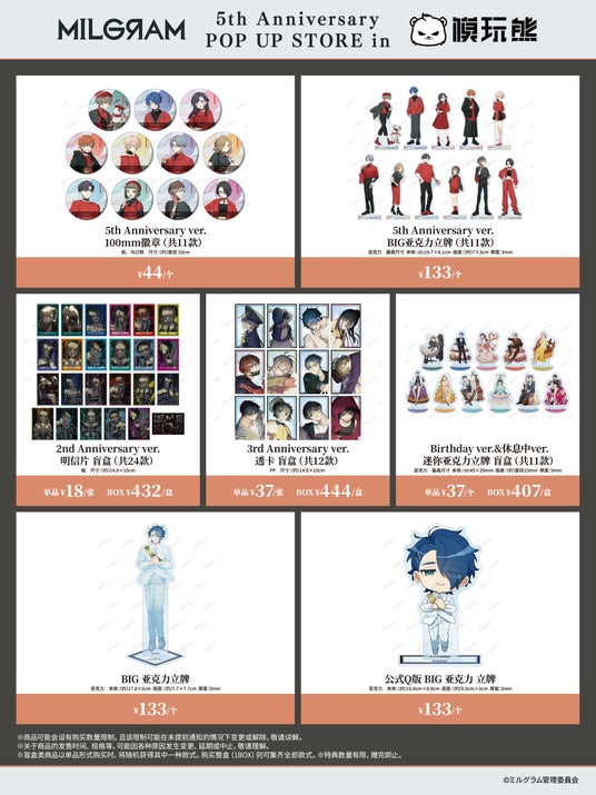 2025年8月6日(水)より中国・KUMATOYS全国オフライン店舗にて「『MILGRAM -ミルグラム-』 5th Anniversary POP UP STORE in KUMATOYS」の開催が決定致しました。
