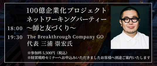 ■8月21日(木)18:00~、『100億企業化プロジェクト ネットワーキングパーティー~師と友づくり~』の開催