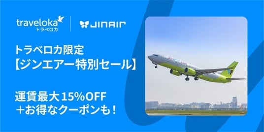 航空券、ホテル、アクティビティ、空港送迎、レンタカーなどの予約をワンストップで提供する旅行予約プラットフォーム「トラベロカ(Traveloka)」(日本法人本社:東京都港区、代表取締役:クリスチャン・ヌグロホ)は、韓国の人気LCC航空会社ジンエアーと連携し、日本発韓国行きの全路線(一部路線を抜く)を対象とした「ジンエアー特別セール」を、7月29日(火)から8月12日(火)まで期間限定で開催いたします。