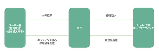本サービスは、故障端末の交換対応、修理手配、キッティング、配送まで一括で代行し、教育現場や端末導入業者様の業務負荷軽減とICT環境の安定運用に貢献します。