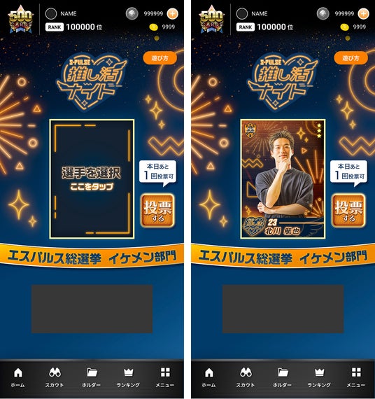 2025年8月31日(日)明治安田J1リーグ第28節鹿島アントラーズ戦にて実施される「推し活ナイト」のメイン企画である、エスパルス総選挙にて、「イケメン部門」のWEB投票を本サービス独占で実施いたします。毎日1票を無料で投票できます。さらにコイン、ダイヤいずれかによるスカウト10回につき、1日あたり上限1回まで追加の投票権をプレゼント!”推し”選手を上位に押し上げられるよう、毎日忘れずに投票しましょう。