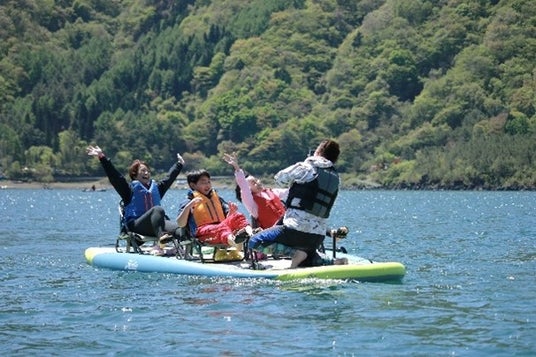 ☆足漕ぎカヤック「HOBIE」は、燃料不使用で環境への配慮に優れたカヤックです。自然界にもともと存在していたペンギンの翼の動きを研究し開発した足漕ぎ推進装置「MIRAGE DRIVE(ミラージュ・ドライブ)」を採用することで、自然景観を壊すことなく、誰もが安心して水上時間を体験できます。「涼湖祭」の開催にあわせて、今回は精進湖で特別に「HOBIE」を楽しむことができる貴重な機会です。