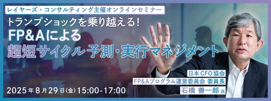 株式会社レイヤーズ・コンサルティング(東京都品川区、代表取締役CEO:杉野 尚志、以下:レイヤーズ)は、オンラインセミナー『トランプショックを乗り越える!FP&Aによる超短サイクル予測・実行マネジメントの実践』を2025年8月29日(金)に開催することを発表いたします。