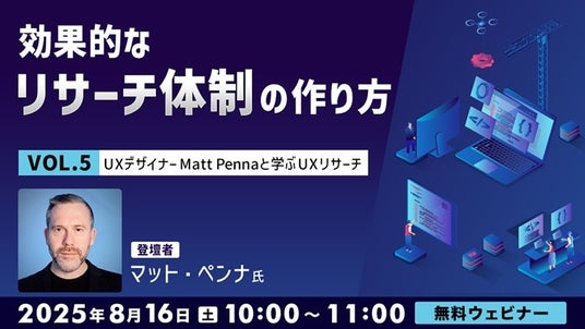 製品やサービスのユーザー体験を理解し、改善するための調査プロセスを指すUXリサーチ。本セミナーシリーズでは、25年以上のUXデザインの経験を持つ米国人のマット・ペンナ氏を講師にお迎えし、全5回にわたりUXリサーチの手法について解説しています。