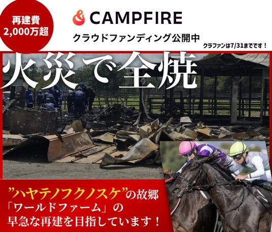 プロジェクトタイトル:火災で全焼【再建費2000万超】ハヤテノフクノスケを輩出した牧場を再建したい!
