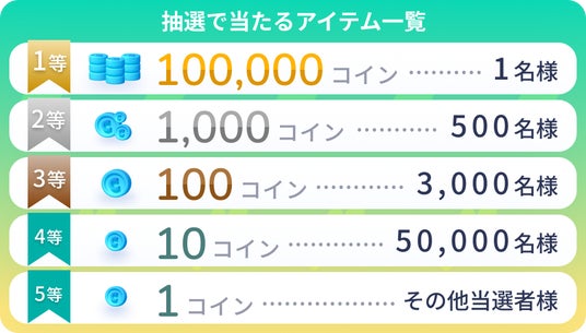 当選者のみに当選結果の通知を行いますので、「マイページ」のコイン履歴をご確認ください。