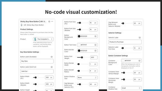 「UR: Sticky Buy Now Button」は、Shopifyストアの商品ページやコレクションページに追従型の今すぐ購入ボタンを簡単に設置できるアプリです。画面をスクロールしても常にボタンが表示され続けるため、お客様がいつでも購入アクションを起こせる環境を提供します。特にスマートフォンユーザーの購買体験を向上させ、カート離脱率の低下とコンバージョン率の改善に貢献します。ノーコードで直感的に操作でき、ワンクリックでテーマに追加可能な手軽さが特徴です。