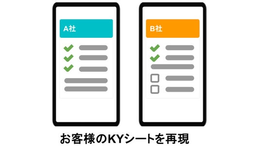 「自社様式に対応できるか」という声にお応えし、お客様独自のKYシートをアプリ上に再現できます。紙の様式をそのままアプリ上に反映できるため、現場の運用を変えることなく、スムーズにペーパーレス化を実現できます。