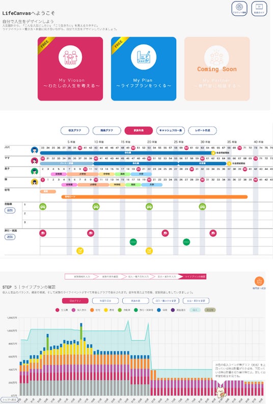 『LifeCanvas』は、人生を“自分で考え、描く”ことを前提に設計された、これまでにないライフプランニングツールです。主な特長は以下の通りです: