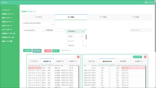 たとえば「データの抜けを埋める」「数字の単位をそろえる」など──煩雑な加工も、m2viewなら30種類以上のメニューから選ぶだけ。