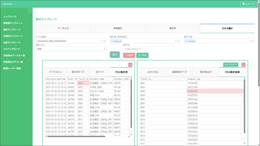 m2viewなら、集計したい列を選ぶだけで即座にクロス集計が完了。