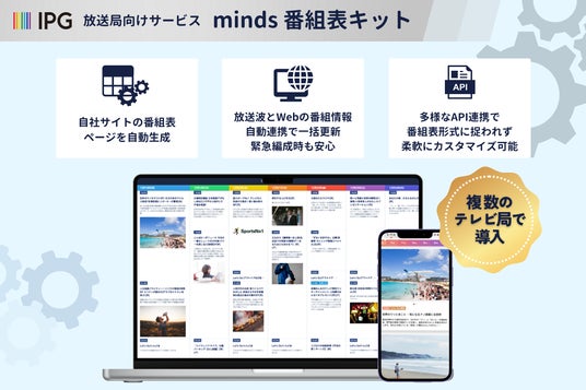 年間約4億以上の公式番組メタデータ運用を誇る株式会社IPG(本社:港区、代表取締役社長:岡本賢人、以下「IPG」)は、2025年6月に放送局向け番組表自動生成・連携サービス「minds 番組表キット」にて、各局の自社サイト内で番組情報検索ができる機能として新たに開発した「検索API」の提供を開始しました。