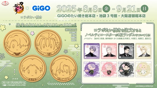 株式会社GENDA GiGO Entertainment(本社:東京都港区 代表取締役社長:二宮 一浩 以下「当社」)はリリース10周年をむかえた大人気アプリゲーム『刀剣乱舞ONLINE』とコラボレーションしたたい焼きとノベルティ付きドリンクを2025年8月8日(金)より販売開始いたします。