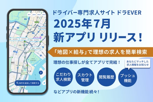 ドライバー専門求人サイト ドラEVER 2025年7月30日 新アプリ リリース