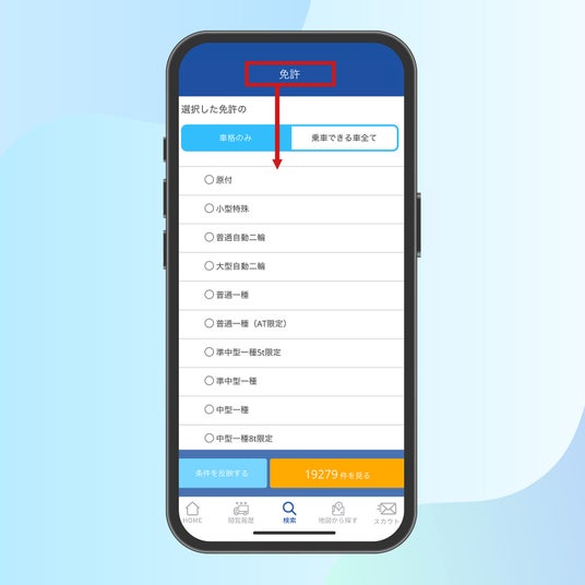 免許で探す画面
