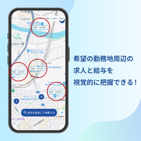 「場所」と「給与」を重視する声に応え、直感的な地図検索機能を搭載しました!