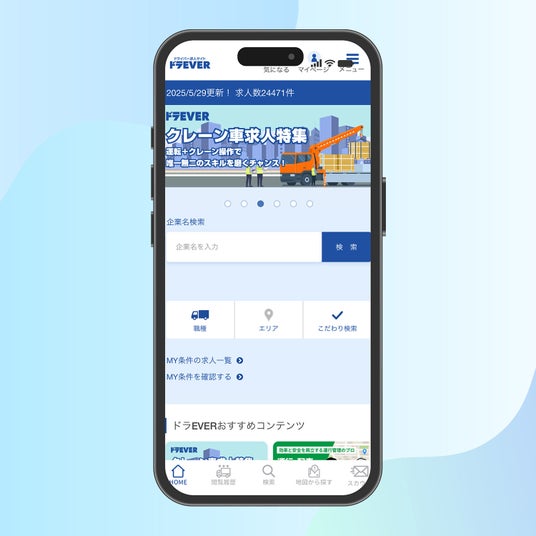 ドライバー専門の求人サイト「ドラEVER」を運営するドラEVERは、この度求職者向けスマートフォンアプリを新たにリリースしました。新アプリではユーザーからの要望が特に高かった「地図検索機能」を新たに搭載したほか、アプリ上での「スカウト管理」、詳細な条件を入れて求人情報が探せる「こだわり検索機能」、「閲覧履歴機能」などの追加により、これまで以上に求職者の皆様の仕事探しを強力にサポートできるようになりました。