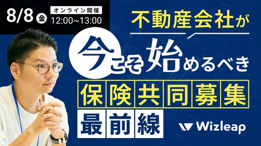 このたび株式会社Wizleapは、保険共同募集におけるシステム活用事例について、不動産会社の皆様に特化したオンラインセミナーを開催いたします。本セミナーでは、「マネーキャリア」および「MCマーケットクラウド」の運営を通じて得た、実際の経験に基づく知見を共有いたします。