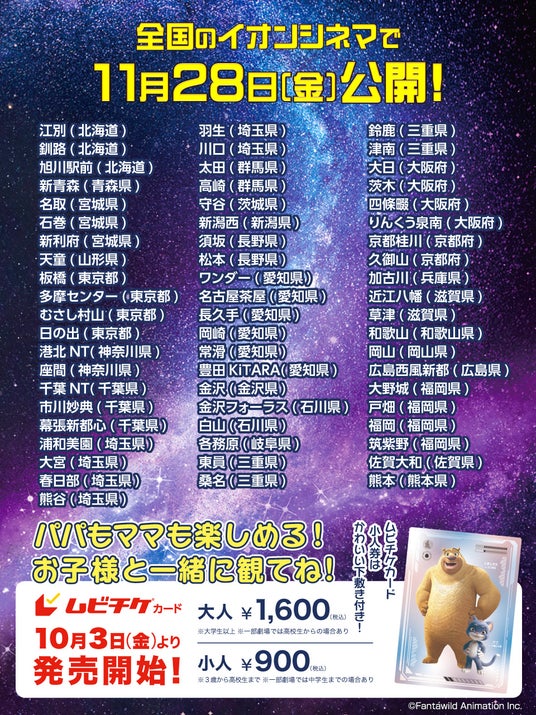 全国のイオンシネマで上映!ムビチケカードは10月3日(金)より上映劇場にて発売開始!
