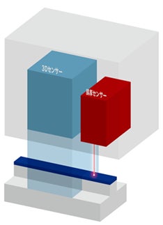 これに対して「PHM-400」は、自動XYステージに3Dセンサーと膜厚センサーのデュアルセンサーを搭載することで、保護膜がついたまま溝・エンボスの高さ測定を可能とします。
