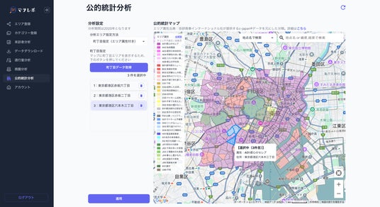 今回のアップデートで新たに追加した「公的統計分析機能」により、「マチレポ」は誰でも簡単に公的統計データにアクセスし、分析に活用することができます。これにより、商圏分析をはじめ、出店計画や地域戦略などの意思決定に、より多角的で信頼性の高い情報を活用することが可能になります。