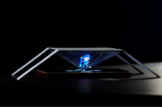 投影用画像を表示したスマホの上に載せると、画像が空中にあるように浮かび上がって見える3D投影装置を作ります。材料は100円ショップで購入できるハードタイプのカードケースと工作用紙だけ。型紙と実験用画像は記事ページ内からダウンロードできます。
