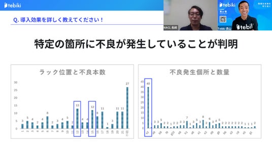 システムを導入した結果、詳細な位置別分析が可能になり、21個のラック位置のうち、特定の位置で不良が多発していることが可視化されました。そして、検査を担当している作業者は、その傾向を既に把握していたものの、それが組織全体で共有されていなかったことも判明しました。