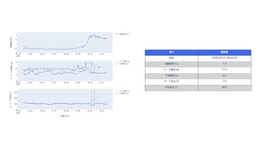 WEBサイトに公開されている準リアルタイムの海象観測値(左:時系列データ、右:最新データ)