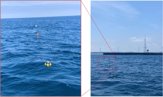むつ小川原洋上風況観測試験サイトにおいて観測中の海象観測ブイ