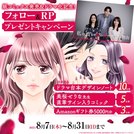 紙単行本発売とドラマ化を記念して、8月7日のドラマ放映日より「チェリッシュ編集部」公式Xにて、フォロー&リポストキャンペーンを開催いたします。