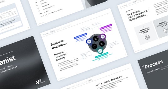 私たちジーピーオンラインは、創業25周年を迎えるWebの企画・制作会社です。企業の価値創造に不可欠である「マーケティング視点」×「デジタル技術」×「クリエイティブ思考」をベースにした事業ドメインを展開しています。それぞれ3つの領域を自由に組み合わせることにより、独自の強みが発揮できる仕組みを採用しています。