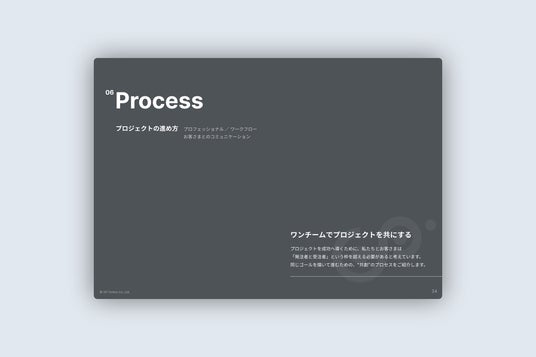 「Webサイト制作は、作ることがゴールではありません。その先にあるお客さまのビジネスの成功こそが、私たちのゴールです。新しい会社案内には、そのゴールを達成するために、私たちがお客さまとどのように向き合い、どのようなチームで、どうプロジェクトを進めていくのか、という想いとプロセスのすべてを詰め込みました。この資料が、未来のパートナーとなる皆様との素晴らしい出会いのきっかけとなることを心より願っております。」