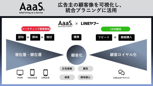「AaaS with LINEヤフー」は、第一弾として、テレビ・デジタル横断で広告主の顧客像を高い解像度で可視化し、統合的なコミュニケーションの最適化を可能にする機能を提供します。これまで実現していたテレビとデジタルの統合分析に、CRM領域での強みを持つLINE公式アカウントのデータが加わることにより、潜在層へのアプローチから、購買者の顧客生涯価値(LTV)の向上まで、一貫したコミュニケーションの最適化を実現します。さらに、広告主のLINE公式アカウントの「友だち」の精緻な分析を通して、新たな「友だち」を増やすための施策や、既存の「友だち」のLTVを最大化するための施策の立案・改善を実現します。この機能を活用することで、最適なキャンペーン設計やPDCAサイクルを一気通貫で実行することが可能となります。