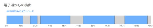さらに、電子透かしの検出画面から、音響透かしのある部分とない部分が可視化されます。