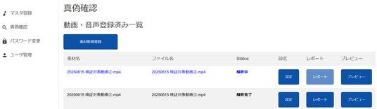 真偽確認画面に検証したいコンテンツを登録すると、すでに登録されたマスターコンテン