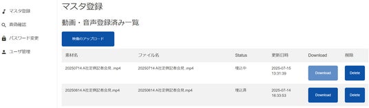 マスター登録画面に作成した動画または音声コンテンツを登録することができます。また、そのマスターコンテンツに音響透かしを入れることができます。