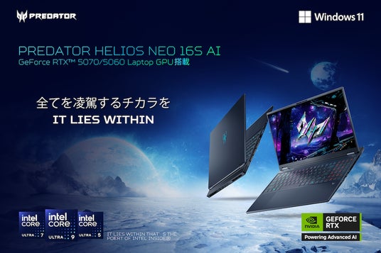 日本エイサー株式会社(本社:東京都新宿区、代表取締役社長:ボブ・セン)は、コアなゲーマーに向けた最上位ゲーミングブランドPredator (プレデター) より、2025 年モデルのゲーミングノートPC「Predator Helios Neo 16S AI」の新製品として、GeForce RTX 5070/5060 Laptop GPUを搭載した2機種を、本日7月31日よりAmazonおよびAcer公式オンラインストアにて順次発売いたします。