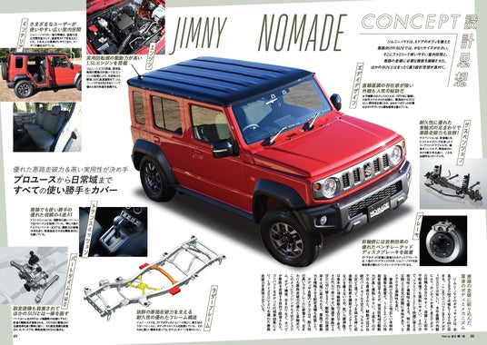 満を持して登場したジムニーノマドの細部を豊富な写真と解説でお届け。これを読めば、ジムニーノマドがほかのSUVとはまったく違う設計思想が息づいていることがわかるハズだ