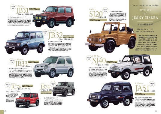 軽自動車規格のジムニーとは異なる、よりワイドトレッドかつハイパワーなキャラクターを持つジムニーシエラシリーズ。新たに5ドアのジムニーノマド登場を機に、これまで登場した歴代のジムニーシエラを振り返る