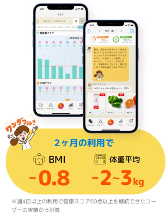 食事の写真を撮るだけでカロリーや栄養バランスを自動で分析、アドバイスを通じて最適な食材やメニューを提案するなど、「カロママ プラス」はAI技術をフルに活用しています。