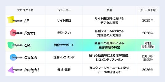 livepass株式会社(本社:東京都、代表取締役CEO:中村旭宏、以下「livepass」)は、動画を軸とした従来のサービスモデルから、より本質的な「デジタル接客体験」へと進化し、企業の顧客体験(CX)改革を支援する新フェーズに突入することを発表いたします。特許技術による個人情報管理の安心・安全性と、独自開発した”顧客の課題推定技術”を掛け合わせることで、サイト来訪・申込・問合せ・レコメンド・分析までの接客プロセス全体におけるCXを飛躍的に向上させる” livepass AI Agent ” としてプロダクトラインナップの提供を加速します。また、第一弾の新プロダクトとなるFAQマッチングソリューション 「 livepass QA 」 を本日2025年7月31日よりリリースいたします。