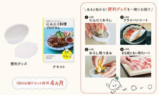 ブックレットと便利なお助けアイテムが毎月届きます。にんにくをとことん楽しむための、プランナーよりすぐりの便利グッズです。
