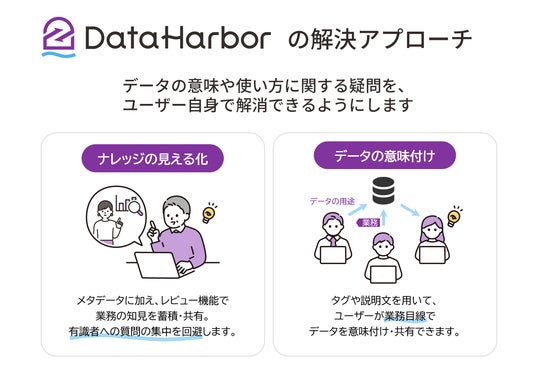 こうした課題を解決し、誰もが自立的にデータを見つけ、理解し、活用できる環境を提供するために、DataHarborを開発いたしました。