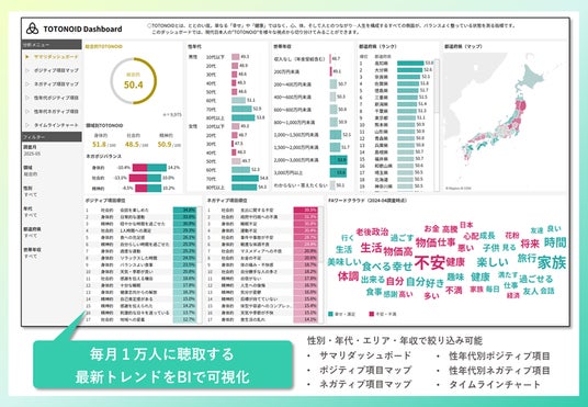 LMが毎月1万人に「TOTONOID」のアンケートを実施し、ダッシュボード化したものを最新トレンドとして、Webブラウザ上で公開します。ダッシュボードはどなたでも無料でご覧いただけます。こちらからご参照ください。