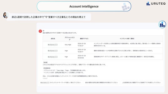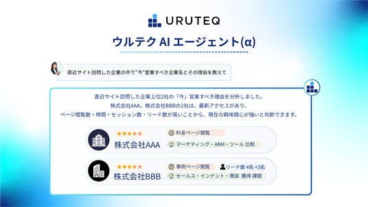 ログリー株式会社(本社:東京都渋谷区、代表取締役:吉永浩和、証券コード:6579、以下、ログリー)が提供するアカウントインテリジェンスツール※1「ウルテク ( https://uruteq.logly.co.jp/ )」は、2025年7月31日(木)に新機能「ウルテクAIエージェント(α)」の提供を開始したことをお知らせします。