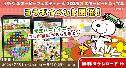 爽快パズルゲーム『スヌーピードロップス』にて、夏の人気イベント「うめだスヌーピーフェスティバル2025」とのコラボイベントを今年も開催します。