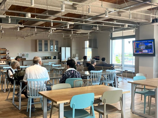 最上階のカフェテリアを雨風を凌ぐだけでなく、酷暑対策を兼ねた避難所としており、情報取得用モニターを通じて避難状況や気象情報を確認できる環境の中、避難者の方が酷暑の中安心して過ごしていただけました。
