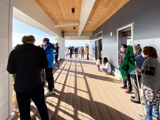 この日、多くの社員が、避難誘導や環境整備に獅子奮迅の活躍を見せました。特に、1階の地域の方へのオープンスペースとしている「うみゆめホール」に避難されていた高齢者の方々を、自分たちの避難より優先させて自主判断で最上階のカフェテリアに案内した若手社員の行動は、「誰かの指示を待つのではなく、自分で最善を考えて行動する」という当社の価値観を体現するものでした。