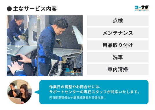 点検やメンテナンス・用品取り付け、洗車・社内清掃などに対応
